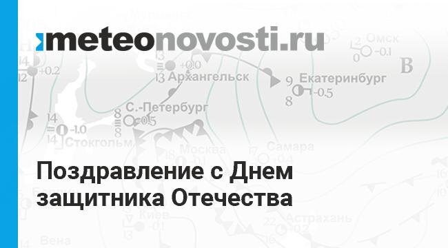 Дорогие коллеги ! Поздравляем Вас с Днем защитника Отечества! Желаем Вам, чтобы ваша сила духа помогала преодолевать любые жизненные препятствия, а высокий профессионализм помогал даже в самых сложных ситуациях. Пусть дома ждут тепло и поддержка близких, а на работе — признание Ваших заслуг! Желаем энергии, профессионального роста, мудрых и оперативных решений. Мы ценим Ваш огромный профессиональный вклад в дело прогнозов погоды, от точности которых зависят успешность наших планов, как в обыденной жизни, так и в самом широком смысле! Пусть каждый день приносит новые возможности, а коллектив и дом остаются Вашим надежным тылом. Коллеги, крепкого здоровья и стабильности во всех делах! С Днём защитника Отечества! Перейти на сайт Прогноз погоды на 14 дней