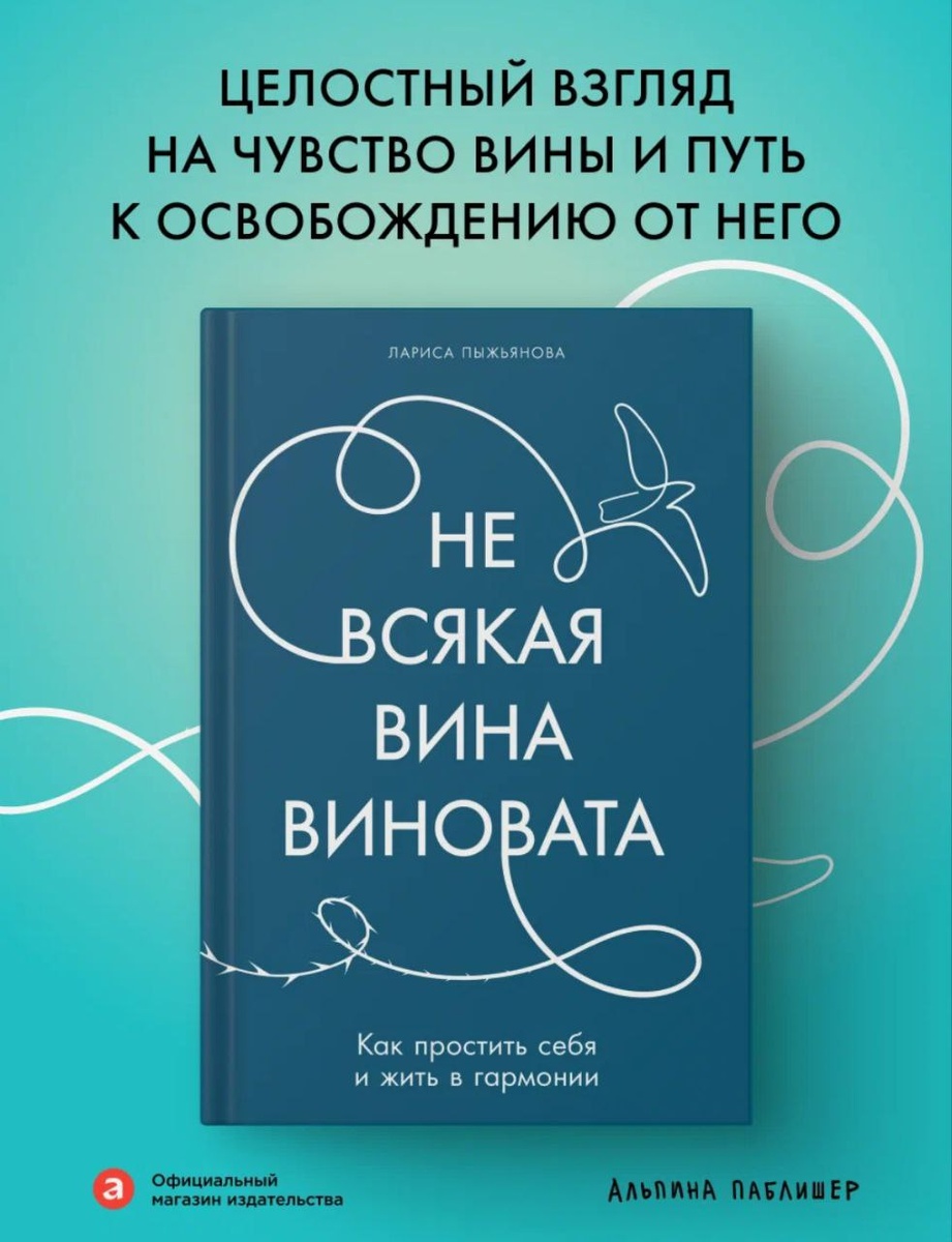 : «Не всякая вина виновата: Как простить себя и жить в гармонии», авторы: Лариса Пыжьянова, Тамара Амелина. Книга посвящена анализу чувства вины: его природе, влиянию на жизнь и методам преодоления. Автор рассматривает вину не как разрушительное переживание, а как инструмент нравственной саморегуляции. «Ответственность, обязательство, чувство вины», автор: Лиз Бурбо. В книге утверждается, что снять с себя иллюзию вины означает сделать шаг к раскрытию своей божественной сущности. «Вина мнимая и настоящая. Как научиться жить в мире с собой», автор: Марина Сульдина. В книге собраны свидетельства известных мыслителей, психологов и жизненные истории, которые помогают по-новому взглянуть на свой внутренний мир. «Хватит обвинять себя! Как навсегда избавиться от чувства вины», автор: Елена Тарарина. В книге говорится о том, что необходимо встретиться с внутренним негативом, прожить его и простить самого себя. «Не мешай себе жить. Как справиться со страхом, обидой, чувством вины, прокр