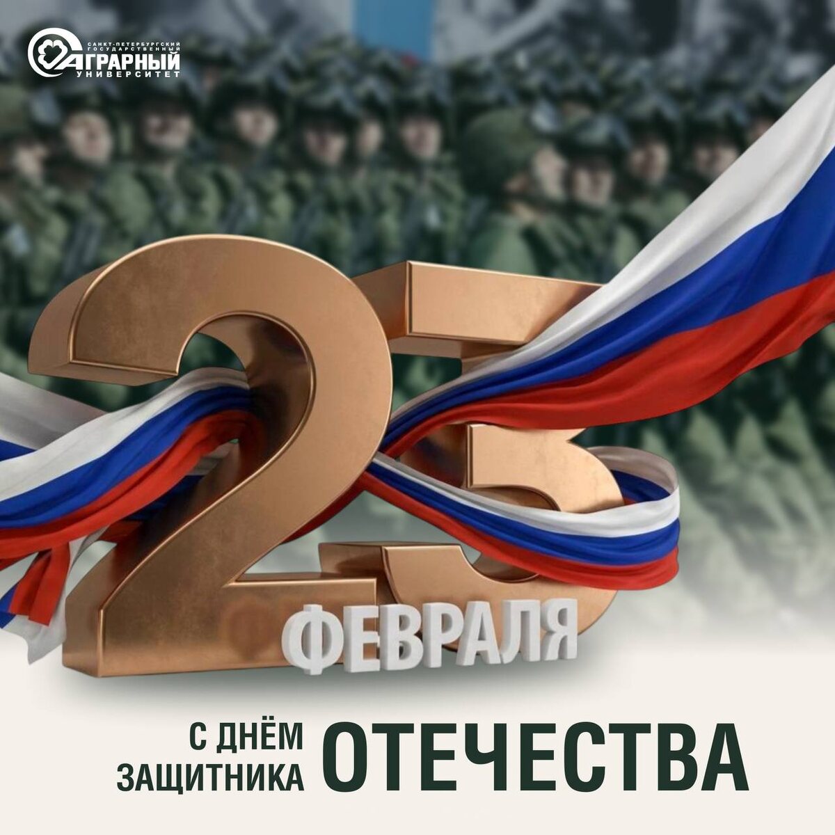 ! 🇷🇺 Сегодня мы поздравляем тех, кто словом и делом доказывает преданность Родине. Это праздник мужества, силы духа и беззаветного служения своему народу. В стенах СПбГАУ мы воспитываем не только профессионалов своего дела, но и настоящих патриотов. Мы гордимся нашими студентами, преподавателями и выпускниками, которые в разные времена стояли и стоят на страже интересов нашей страны. Желаем нашим защитникам крепкого здоровья, неиссякаемой энергии, стального характера и новых свершений на благо Отечества. Пусть в ваших домах всегда царят мир, согласие и тепло! С праздником! 🎉