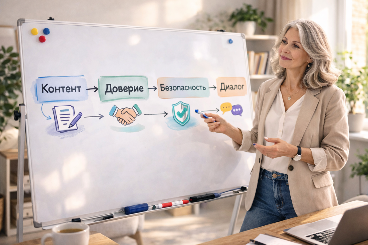 Подписывайся на телеграм-канал Многие сетевики сталкиваются с одной и той же ситуацией: посты читают, просмотры есть, подписчики приходят, а в личные сообщения почти никто не пишет. Создаётся ощущение, что аудитория «пассивная». На практике это нормальный этап воронки. Часть людей всегда остаётся наблюдателями. Задача — не «заставить», а снизить барьеры и провести человека к безопасному первому шагу. Ниже — простая и практичная логика, которая помогает увеличить глубину воронки и перевести читателя в диалог. Наблюдатели — это люди, которые читают, смотрят, сохраняют, но редко проявляются. Они не спешат писать первыми, потому что: Для аудитории 35–60 это особенно характерно. У многих уже был опыт давления и агрессивного рекрутинга, поэтому они выбирают безопасную дистанцию. Это нормально. Вопрос в том, как сократить путь до первого шага. Если человек не понимает, что произойдёт после сообщения, он откладывает действие. Что сделать: коротко описывать сценарий — шаги, время, результат. Че