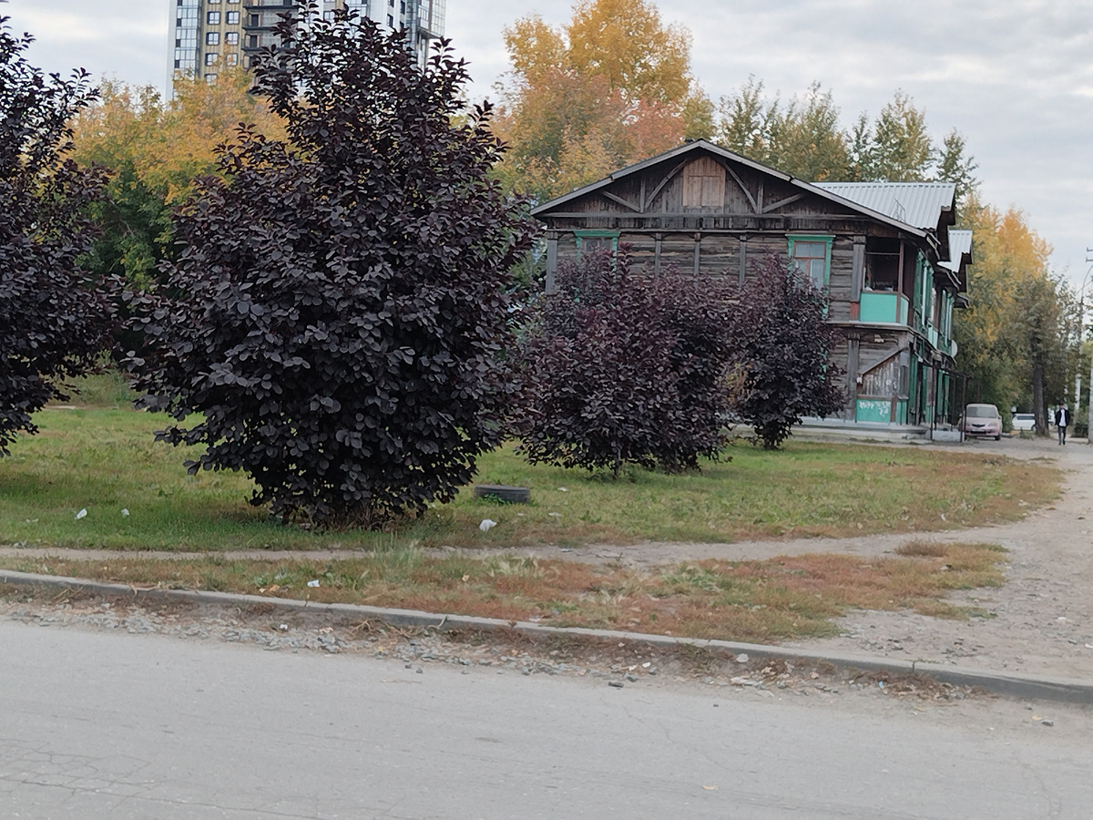 Доброго дня всем. Ну вот я и вернулась к родному и любимому Новосибирску. В нашем городе нет такого как в других сибирских городах, зашёл в центр города и увидел историю. В центре есть что посмотреть, но вперемежку с новостроем. Да и свернуть придётся, погулять по соседним улицам. Но чего я не встретила в других городах, это наши бараки. Хотя для меня это полноценные двухэтажные дома из дерева. Да понятно, что дерево гниёт и дома разрушаются. Зато какие там уютные дворики. Песня вспоминается "Ах как хочется вернуться, ах как хочется ворваться на денёк, на нашу улицу в три дома, что так ..." Короче понятно.. Ездила на левый берег, конечно же по работе, и встретила такую красоту. Это находка прям. Такой красивый, спокойный уголок истории. А над всем этим кранами размахивает стройка. На повороте дорог стоит несколько домов. Внутри уютные зелёные дворики. И присутствует деревянные украшения и всё это в хорошем сохране, не отвалилось. Из интернета "В Новосибирске активно ведётся расселение