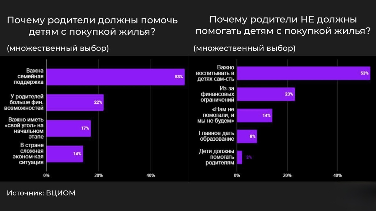При этом, согласно опросам, 45% детей хотят жить в собственном жилье, но только 13% родителей реально начали копить.