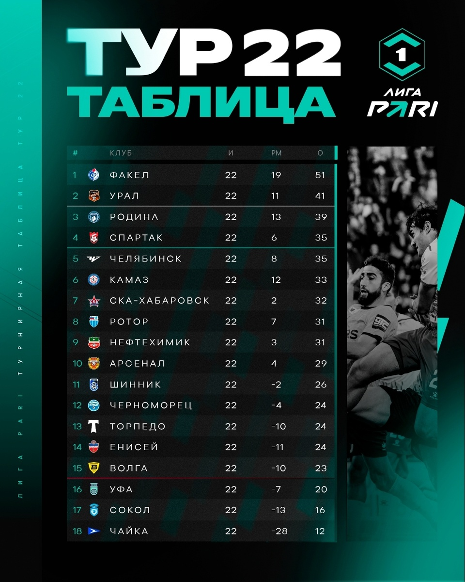 В 24-м туре сыграют: 14.03 16.00 Спартак - Чайка 18.00 Факел - Черноморец 17.00 КАМАЗ - Ротор 08.00 Хабара - Родина 15.03 11.30 Урал - Арсенал Волга - Челяба 15.00 Уфа - Сокол Шина - Енисей 16.03. 19.30 Торпедо - НХ