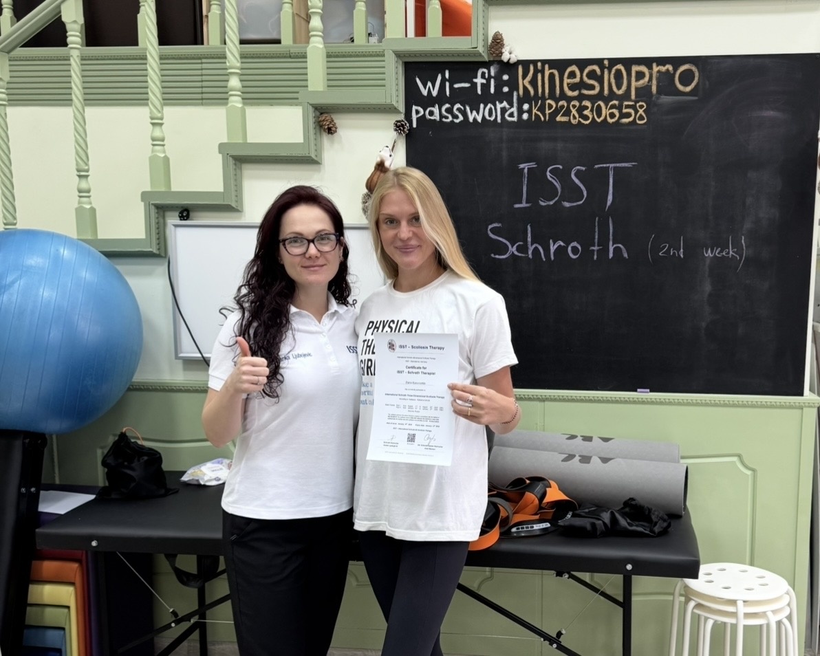 Я прошла ещё одно международное обучение по лечению сколиоза. Это обучение было посвящено методу Шрот — одному из первых и наиболее изученных консервативных методов коррекции сколиоза. На сегодняшний день Шрот относится к числу немногих подходов, эффективность которых подтверждена клиническими исследованиями и отражена в международных рекомендациях. После разборов клинических случаев, в том числе ситуаций, когда при грамотной консервативной терапии удавалось отменять уже назначенные детям операции на позвоночнике, мотивация развиваться в этом направлении стала ещё сильнее. Метод Шрот — это не набор упражнений из интернета и не «обычная зарядка». Это целостная система, включающая: Неправильное выполнение может привести к ухудшению ситуации, поэтому метод требует сопровождения специалиста. Эффективность во многом зависит от квалификации врача и точности выполнения программы. По системе Шрот я работаю уже не первый год, и каждый пациент — это всегда индивидуальная схема, а не шаблонное