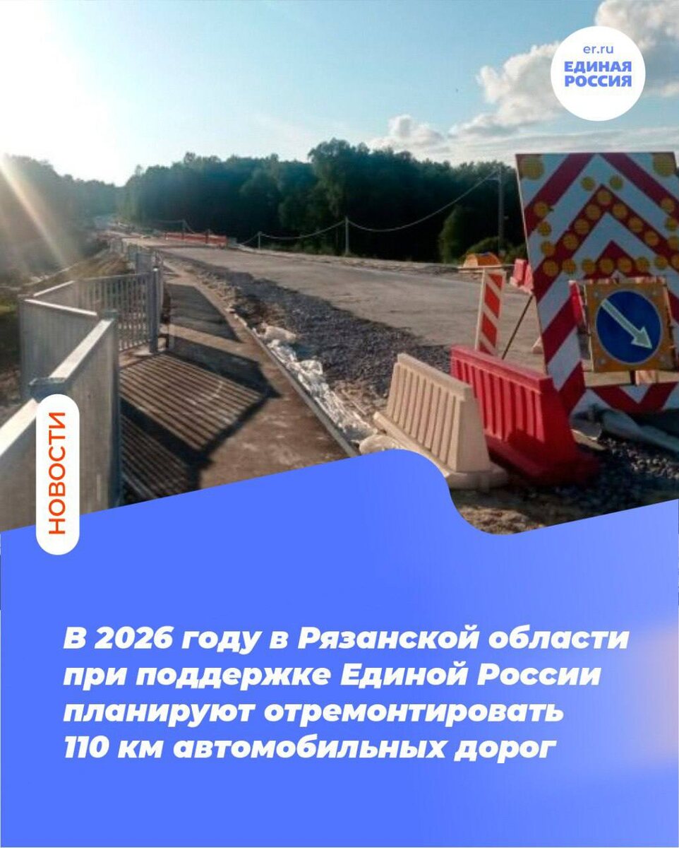 В Рязанской области при поддержке Единой России в 2026 году планируют отремонтировать 110 км автомобильных дорог
