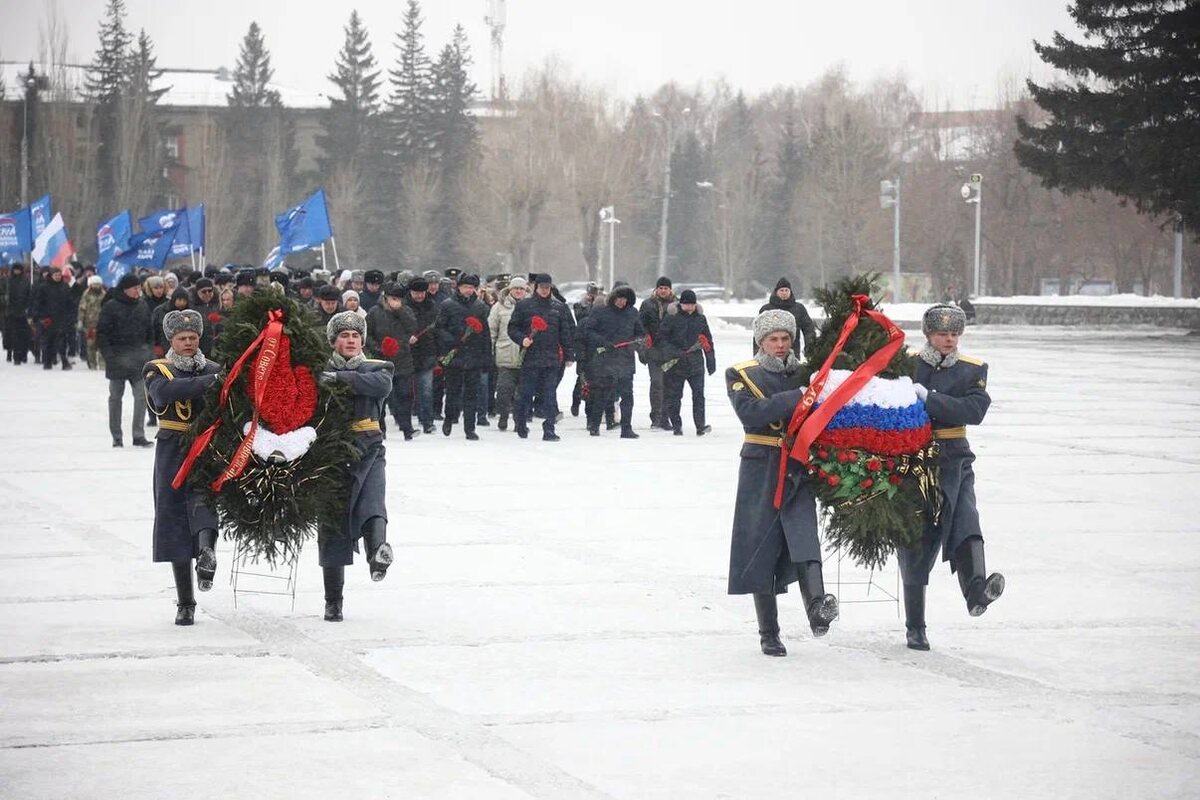 В День защитника Отечества, 23 февраля на Мемориальном ансамбле «Монумент Славы» в Новосибирске прошла торжественная церемония возложения цветов и венков. Почтить память погибших воинов-сибиряков пришли первые лица региона, руководители силовых ведомств, общественники, ветераны и простые горожане. Участие в памятном мероприятии приняли полномочный представитель Президента РФ в Сибирском федеральном округе Анатолий Серышев, губернатор Новосибирской области Андрей Травников, председатель Законодательного собрания Андрей Шимкив, сенатор Владимир Городецкий и мэр Новосибирска Максим Кудрявцев. Также цветы к Вечному огню возложил начальник регионального главка МВД Андрей Кульков и руководители других силовых структур. Собравшиеся почтили память погибших защитников Родины минутой молчания. Ранее Андрей Травников поздравил сибиряков с Днём защитника Отечества София Лавренюк