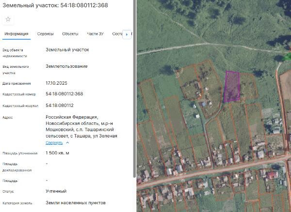 Название: Земельный участок с кадастровым номером 54:18:080112:368, местоположение: Российская Федерация, Новосибирская область, Мошковский