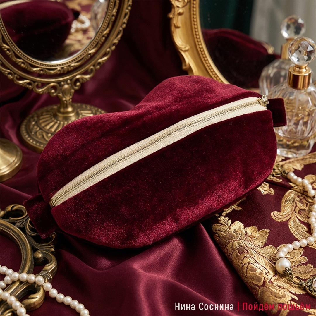 Рубрика «Наши рукоделки» создана для того, чтобы каждая работа была увидена и оценена. Не стесняйтесь показывать свои творения — даже самые первые шаги важны! Так мы обмениваемся вдохновением, поддержкой и опытом. Сегодня я показываю вам необычную косметичку в форме губ из бархатной ткани - эффектную, с характером и особым настроением. Мягкий бархат глубокого бордового оттенка красиво играет на свету, подчёркивая плавные линии формы. Изделие держит объём и выглядит выразительно. Светлая молния проходит по центру и становится не только удобной застёжкой, но и стильным акцентом. В пошиве есть свои секреты: аккуратное соединение деталей, точная посадка молнии, правильно подобранная фурнитура. Именно эти нюансы делают результат особенно аккуратным и завершённым. В итоге косметичка выглядит роскошно, при этом остаётся практичной и удобной. Такой аксессуар приятно держать в руках и не менее приятно создавать. Это тот случай, когда идея, ткань и техника складываются в гармоничный образ. Пригл