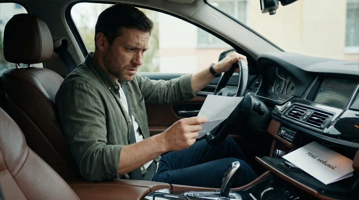 Парковка у дома. Серебристая машина стояла у подъезда. Игорь сел за руль, завёл мотор. Рука потянулась к бардачку — искал салфетки. Открыл, а там —