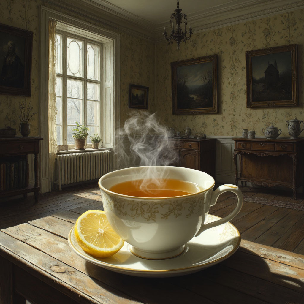 Вкус чая — не просто лимон и горечь, а что‑то ещё, что-то, что существовало до слов, до памяти, до самого времени.