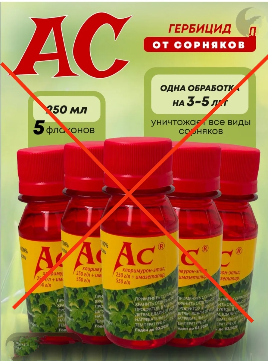 "Ас "– системный гербицид сплошного действия для предупреждения появления и искоренения (уничтожения) нежелательной древесно-кустарниковой* и травянистой, в том числе карантинной, растительности на земельных участках полос отвода железных и автомобильных дорог, в охранных зонах продуктопроводов, под воздушными высоковольтными линиями электропередачи и связи, на следовых и