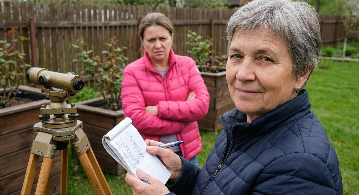 Нина не спешила. Она зашла в дом, поставила чайник, переоделась в рабочее. Потом вышла в сарай, достала нивелир и рейку. Нашла в папке план с координатами угловых точек. Установила прибор на задней части участка - там, где ещё с советских времён торчали два бетонных столбика - межевые знаки, поросшие мхом, но никуда не делись.