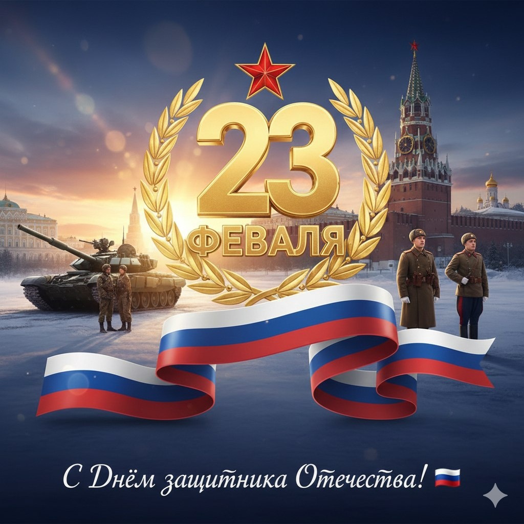 ! Дорогие мужчины, коллеги, защитники! Поздравляем вас с Днём защитника Отечества! Этот праздник является символом мужества, стойкости и верности долгу. Он всегда напоминает нам о важности защиты нашей Родины, её интересов и её ценностей. Мы благодарим вас за ваш труд, профессионализм и ответственность. Пусть в вашей жизни всегда будет место для новых свершений, а каждый день будет наполнен успехами и достижениями. Желаем вам крепкого здоровья, благополучия, мира и добра! С праздником!
