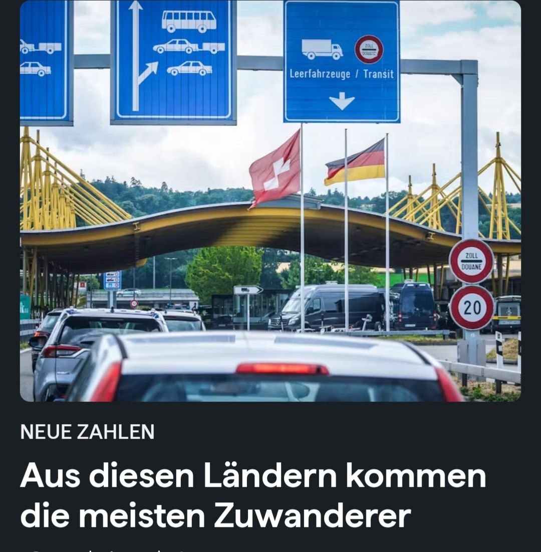 Согласно последним данным федеральных властей, это на 5221 человека меньше по сравнению с 2024 годом. Одновременно 82 659 иностранцев покинули страну. Это на 4,8 процента больше, чем годом ранее. Цифры Иммиграция Всего: 165 386 человек Страны ЕС/ЕАСТ: 120 965 человек Третьи страны: 44 421 человек Разница к прошлому году: −3,1 процента По странам: Германия: 25 831 Франция: 20 233 Италия: 17 839 Португалия: 11 365 Испания: 10 921 Румыния: 6756 Польша: 5326 Афганистан: 3450 Турция: 3168 Венгрия: 2872 Эмиграция Всего: 82 659 человек Страны ЕС/ЕАСТ: 64 103 человека Третьи страны: 18 556 человек Разница к прошлому году: +4,8 процента Чистая миграция, то есть разница между иммиграцией и эмиграцией с учётом статистической корректировки, снижается второй год подряд. В 2025 году она составила 74 675 человек — на 10,5 процента меньше, чем годом ранее. В целом к концу 2025 года в Швейцарии проживали 1 613 486 граждан стран ЕС/ЕАСТ и 800 922 граждан третьих стран. Наиболее широко представ