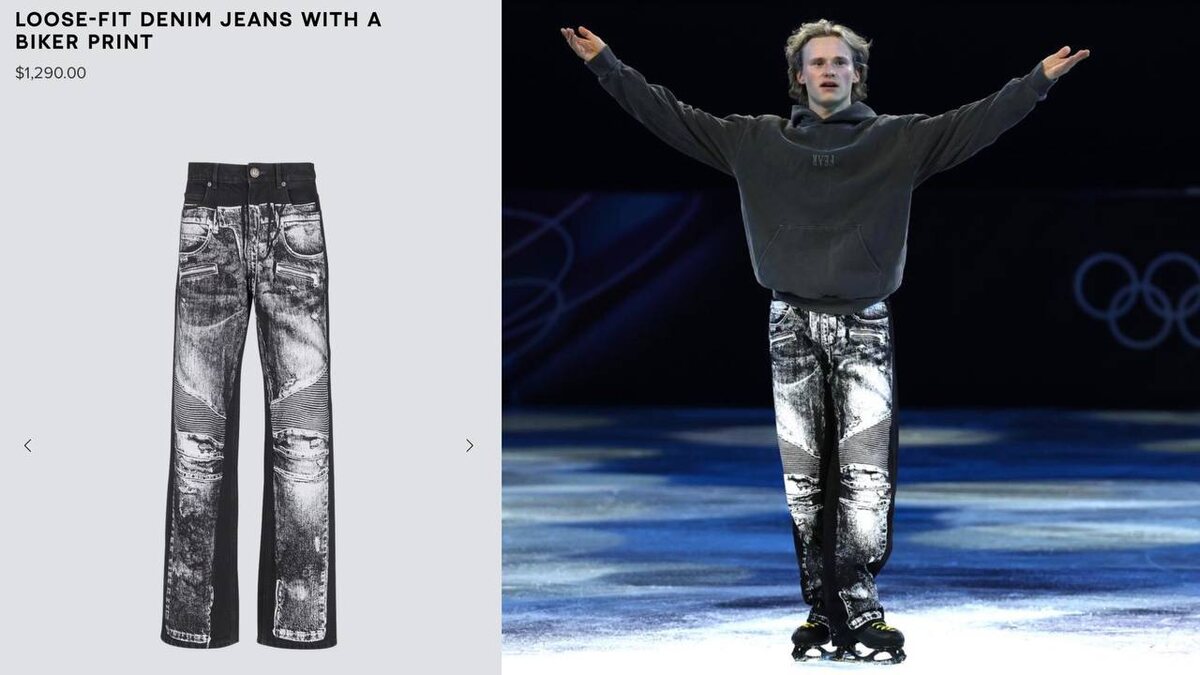 Ilia Malinin wears $1,300 Balmain biker denim for his Olympic Gala performance