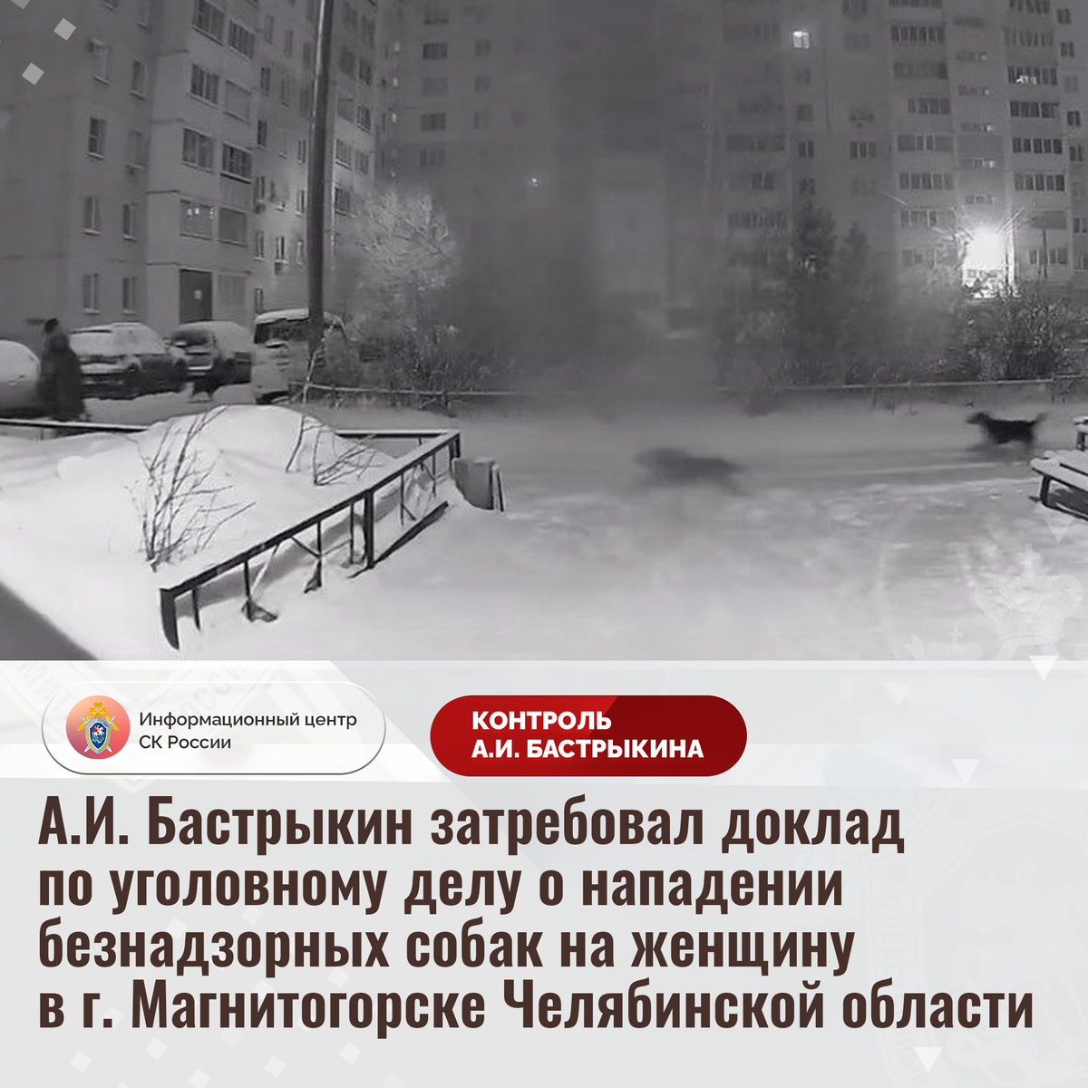 А.И. Бастрыкин затребовал доклад по уголовному делу о нападении безнадзорных собак на женщину в г. Магнитогорске Челябинской области В сети Интернет сообщается, что в феврале текущего года в городе Магнитогорске Челябинской области безнадзорные собаки напали на женщину, укусив за ногу. Пострадавшей потребовалась медицинская помощь. Отмечается, что животные обитают вблизи жилых домов, детских садов и школ, однако профильными структурами мер к их отлову не принимается. В СУ СК России по Челябинской области возбуждено уголовное дело. Председатель Следственного комитета Российской Федерации Александр Иванович Бастрыкин затребовал у руководителя СУ СК России по Челябинской области Андрея Викторовича Щукина доклад об установленных в ходе проведенных следственных действий обстоятельствах, а по завершении расследования уголовного дела – о его результатах. Исполнение поручения поставлено на контроль в центральном аппарате ведомства. #СледственныйКомитет #СКРоссии #СКР #ИЦСКР #ИнформационныйЦен