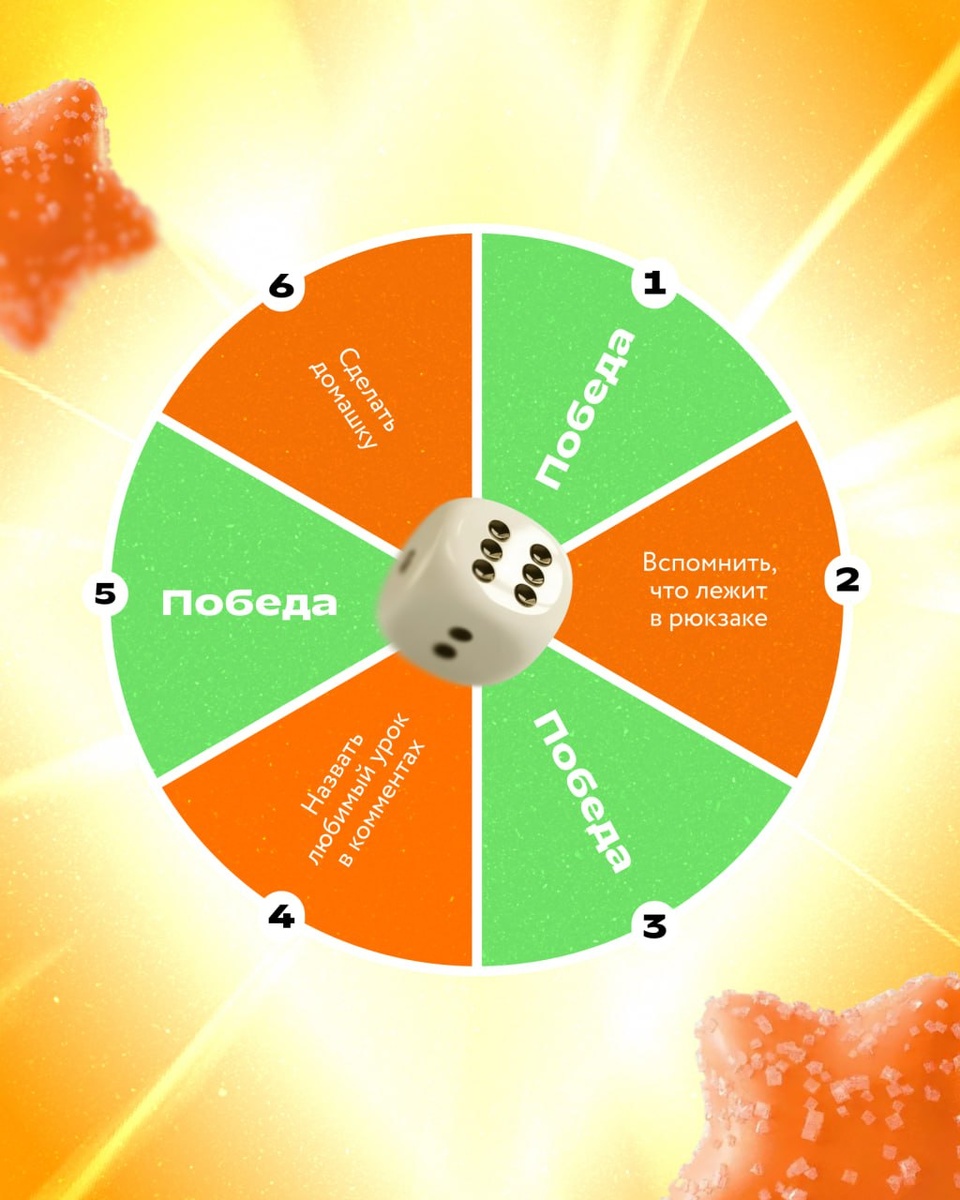 😎 Правила простые: ✅ Зелёный — вы выиграли! Выходной пройдёт идеально: можно расслабиться и ничего не делать ⛔️ Красный — сорян, вы проиграли. Готовьтесь выполнить школьное задание! Скопируйте кубик 🎲, вставьте его в комментарии под постом и узнайте, что вас ждёт! Погнали ⬇️