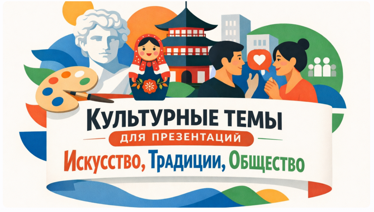 Когда преподаватель объявляет тему «Искусство и традиции народов», первая реакция — растерянность. Материала море, но как собрать его в логичную презентацию? Особенно если на подготовку есть пара дней, а хочется не просто пересказать учебник, а удивить аудиторию. Сталкивался с этим лично: готовил доклад по русскому декоративному искусству для урока в 5 классе, потратил три часа на подбор фактов и визуалов. Проблема в том, что культурные темы требуют баланса — нужна и теория (что представляет собой культура как система), и живые примеры (традиции италии, обычаи народов севера), и визуальная подача. Когда времени мало, помогают AI-инструменты вроде Presentacium — загружаешь текст про народные традиции и музыку, выбираешь школьный или научный шаблон, за 3 минуты получаешь основу с картинками и структурой. В этой статье я собрал 12 проверенных культурных тем для презентаций, которые закрывают разные интенты — от древнего искусства до современных субкультур. Плюс даю структуру, чтобы доклад не превратился в сухое перечисление фактов, и делюсь лайфхаками по визуальной подаче.