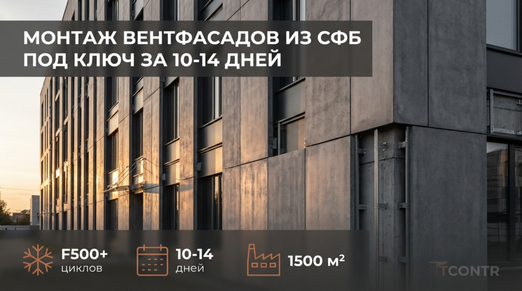Самый важный показатель для уличных изделий в России. Маркировка F500 означает, что изделие выдерживает не менее 500 циклов замораживания и оттаивания без потери прочности и внешнего вида. Для климата Москвы это эквивалентно 50+ годам эксплуатации. Собственное производство архитектурного бетона площадью 1500 м² позволяет компании «Точка Контроля» строго контролировать состав смеси и проводить испытания, гарантируя заявленные характеристики.