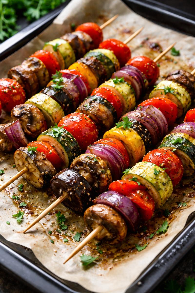 Овощной шашлык в духовке — это простое, вкусное и доступное постное блюдо, которое легко приготовить дома. Никакого мангала не нужно, а результат получается ярким, ароматным и очень аппетитным.