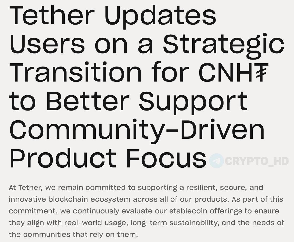 💲 В Tether объявили о поэтапном прекращении поддержки стейблкоина CNHT, привязанного к офшорному юаню.