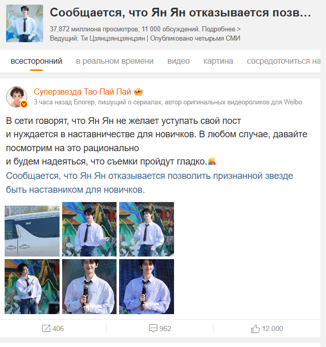 В результате сегодня на первом месте в горячем поиске слух, что "Ян Ян отказывается принимать новичков".