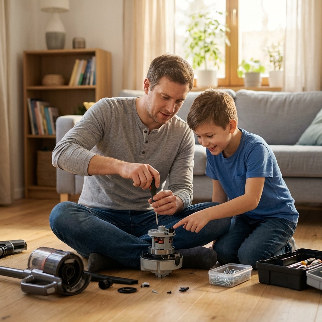 Представьте картину: суббота, папа сидит на полу в окружении деталей от старого пылесоса, а рядом — сын с горящими глазами. Кто-то скажет, что это просто ремонт бытовой техники. На самом деле это один из лучших способов провести время вместе и построить крепкие отношения между поколениями.