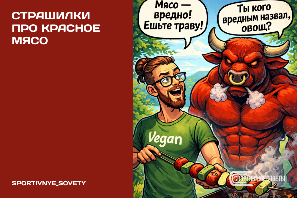 Любители шашлыков, бургеров и бабушкиных котлет наверняка слышали о вреде красного мяса. Десятки лет нас пичкали историями о том, как сочный стейк забивает наши артерии холестерином. Так давайте же дадим сочного научного «леща» всем этим страшилкам. К сути. Учёные провели систематический обзор и метаанализ 20 рандомизированных контролируемых исследований [1]. Это не просто спросить «мистер, вы часто едите мясо?» – это людей делили на группы, сажали на разные диеты и смотрели, что происходит ПО ФАКТУ, в контролируемых условиях. В общем, оценивали влияние потребления минимально или необработанной говядины на факторы риска сердечно-сосудистых заболеваний у взрослых. 1. Холестерин общий, «хороший» (ЛПВП), триглицериды, аполипопротеины, давление (систолическое и диастолическое) – всё это осталось совершенно без изменений. 2. «Плохой» холестерин (ЛПНП) показал микроскопический рост – в среднем на 2,7 мг/дл. Это смешная цифра. Для сравнения, чтобы серьёзно повлиять на риск, нужно говорить о д