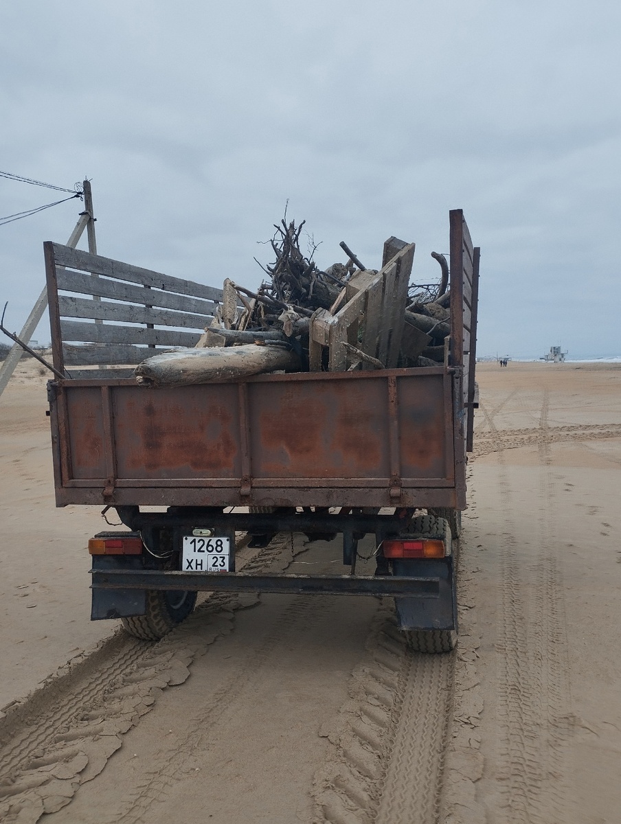 Несмотря на праздничный выходной день коммунальные службы убирают от мусора наш берег