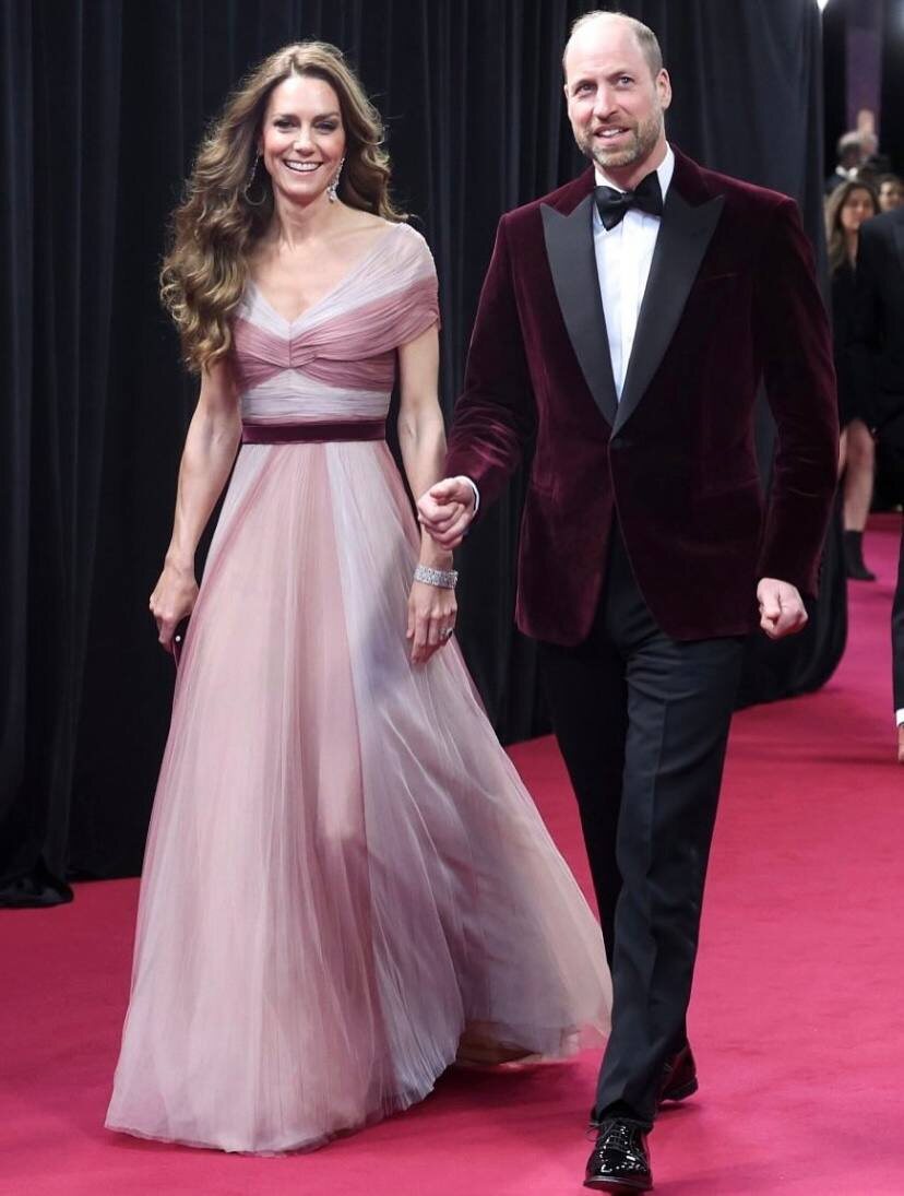 ! Принц Уильям является президентом Британской кинопремии с 2010 года, поэтому его присутствие на церемонии обязательно! На Кейт: 🔹платье Gucci, в котором уже была в 2019 году 🔹Обувь Oscar de la Renta 🔹Клатч Prada 🔹бриллиантовые серьги Елизаветы II 🔹бриллиантовый браслет королевы Мэри ☝️Обратите внимание на модную деталь-пояс Кейт в один цвет с пиджаком Уильяма!