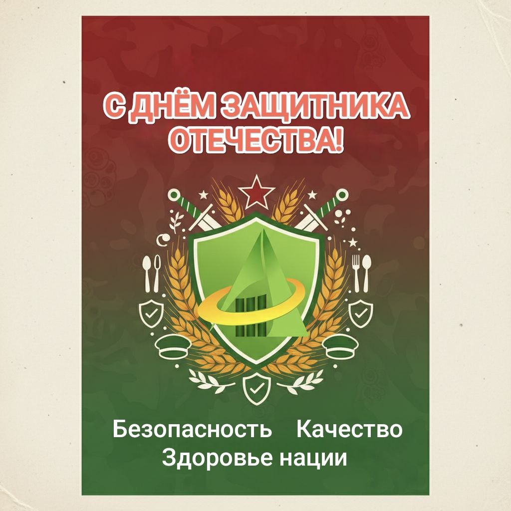 ! Сегодня мы поздравляем тех, кто стоит на страже нашей страны. Но есть и другой, не менее важный фронт — фронт продовольственной безопасности. Каждый день вы, технологи, менеджеры по качеству, сотрудники пищевых производств, обеспечиваете: ✅ стабильность страны — без еды не работает ни одна сфера; ✅ здоровье нового поколения — то, каким вырастет наш завтрашний день; ✅ силы тем, кто прямо сейчас с оружием в руках защищает Родину. Ваш труд — это фундамент. Спасибо за вашу надежность и профессионализм! 💪