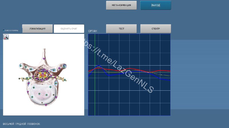 После проведения обследования мы, в прошлой части, остановились на экране, см. рис 1 , из которого возможно: 1. Провести Мета-терапию, 2. через кнопку «Локализация» выделить очаг с последующей его