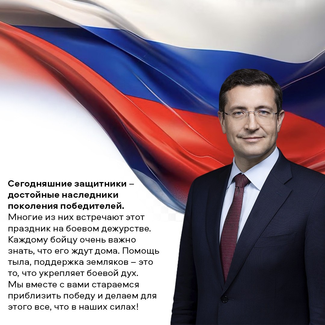 С Днём защитника Отечества нижегородцев поздравляет губернатор региона Глеб Никитин: «В истории нашей страны, пожалуй, не было такого периода, когда её не приходилось бы защищать от посягательств агрессоров. В этом празднике – и подвиг народного ополчения 1612 года, и имена наших великих полководцев, давших отпор Наполеону, и Великая Победа 1945-го, и ежедневный подвиг тех, кто сейчас стоит на страже наших рубежей, отстаивая суверенитет, язык и культуру России. Желаю вам крепости духа, сил и здоровья! Вашим семьям – благополучия и веры! Низкий поклон ветеранам и всем, кто сегодня в строю!»