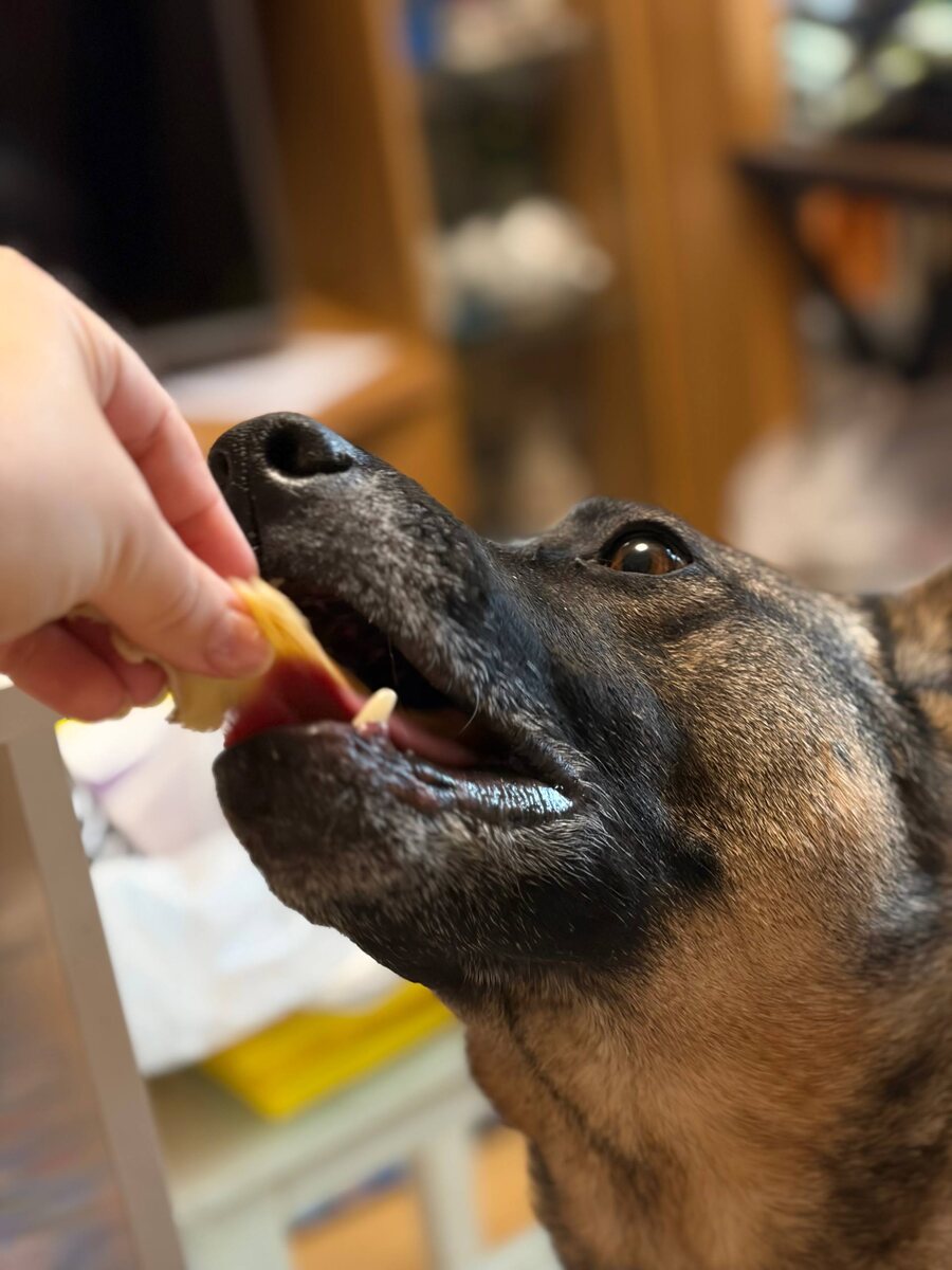 Отдать должное Степиной деликатности, так аккуратно берет блины из рук. Не то, что Молли... При виде блинов напрочь теряет рассудок и чувство самосохранения. Если мясо побаивается тырить у Степана, то