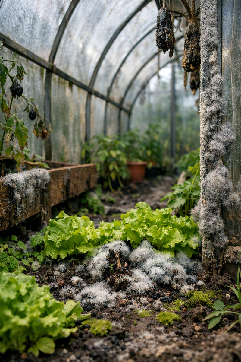Если в теплице появился белый налёт на земле, серый пушок на стенках или чёрные пятна на растениях — это сигнал тревоги. Плесень и грибок в теплице способны за короткое время уничтожить рассаду, снизить урожай и испортить почву на несколько сезонов.
