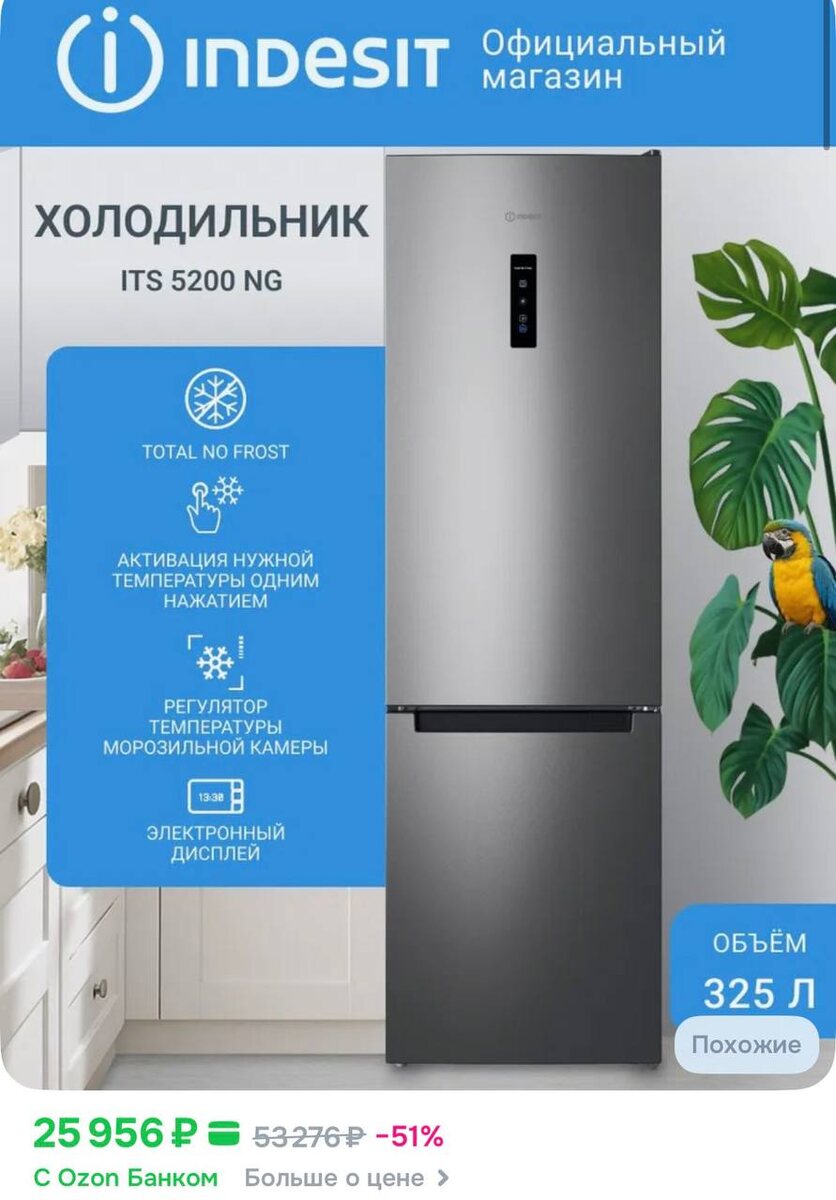 Двухкамерный холодильник Indesit ITS 5200 NG, 325 л, No Frost, дисплей, темно-серый