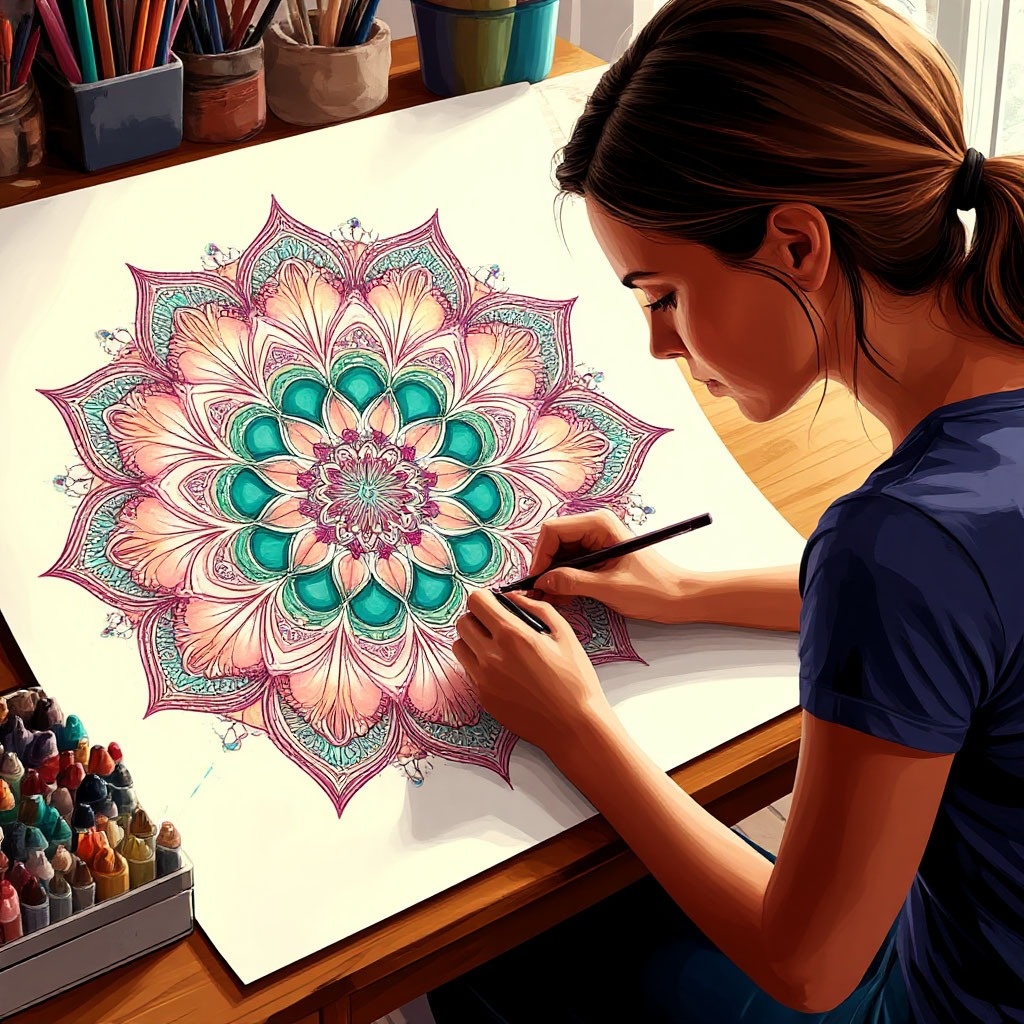 Помните, как в детстве мы могли часами сидеть с раскраской, не думая ни о чем, кроме как не вылезти за контур? Так вот, хорошая новость: это чувство беззаботности и концентрации доступно нам и сейчас. И имя ему — МАНДАЛА. Многие до сих пор думают, что раскрашивание — это забава для детей. Но давайте разберемся, почему психологи и художники со всего мира рекомендуют мандалы взрослым, серьезным и вечно занятым людям. 🧘♀ ✨ 1. Дзен для мозга (Антистресс) Вспомните свой обычный вечер: бесконечный скроллинг ленты, новости, десятки мыслей в голове. Мандала работает иначе. Когда мы подбираем цвета и заполняем узоры, мозг переключается с режима «многозадачность» в режим «здесь и сейчас». Это естественный способ снизить кортизол (гормон стресса) без всяких приложений для медитации. Рисуя круги, мы буквально гармонизируем свое состояние. 🎯 2. Тренировка концентрации (Режим полета) В мире, где нас отвлекают уведомления каждые 5 минут, способность удержать внимание на одном деле — это суперсила.