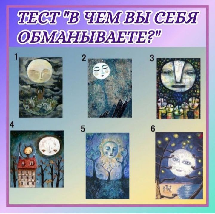 : В ЧЕМ ВЫ СЕБЯ ОБМАНЫВАЕТЕ ? 🔻Мы часто не замечаем того, что обманываем себя, да, нам действительно таким образом легче переживать многие неприятные моменты, но всему есть предел. 🔻Чтобы помочь вам разобраться в том, где вы себя обманываете, пройдите этот тест. Надеюсь, он действительно поможет вам пересмотреть некоторые моменты в вашей жизни. 🔻Присмотритесь к картинкам, интуитивно выбирайте картинку, которая привлекает вас больше всего. Можете настроиться на вопрос теста, закрыть глаза, а потом выбрать тот вариант, к которому сразу потянулись. УДАЧИ 🙏💗💗💗 ОТВЕТЫ ⬇️⬇️⬇️