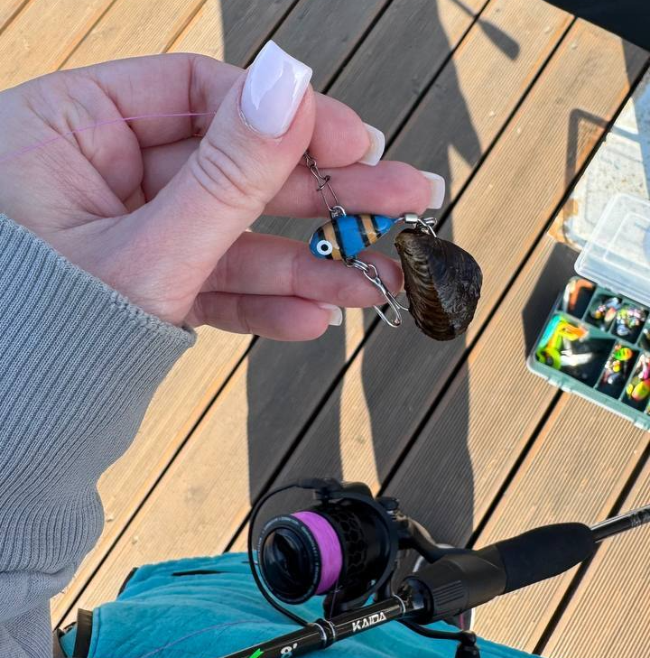 Разложила снасти, снарядила удочку и начала макать приманки по очереди в разных направлениях. 12 часов дня, солнце в зените уже припекает, а на деревянном пирсе так вообще отлично, можно сидеть и наслаждаться погодой. Первый клев начался с ракушек. Кидаю все, от тейл-спиннеров и резины до воблеров всех возможных цветов и степеней заглубления, результата нет. Ну ладно, хоть погода отличная, продолжаю загорать в пуховике)