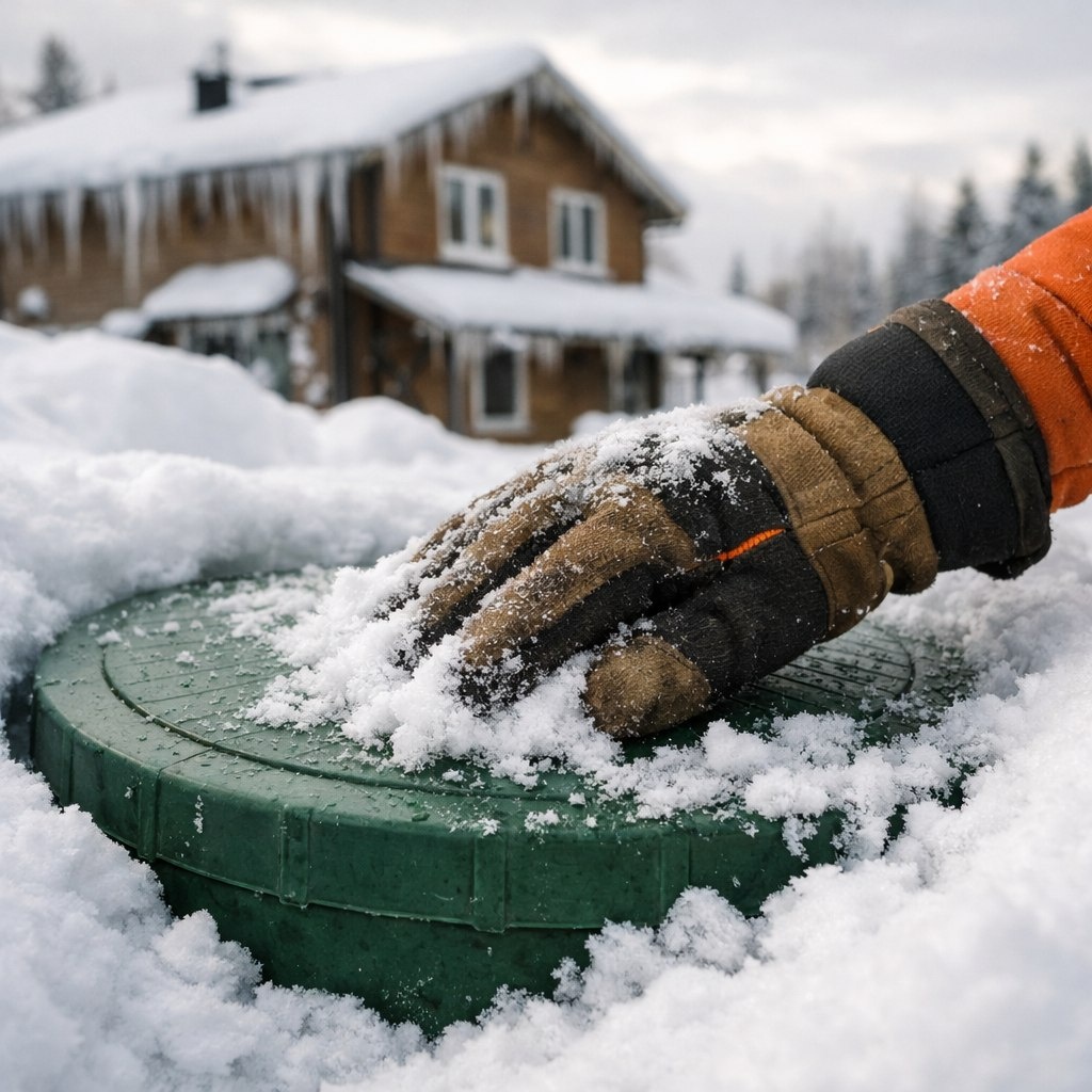 Выйдите на участок и посмотрите, где лежат основные сугробы. Если люк септика или вентиляционные трубы завалены снегом по самую макушку – срочно расчистите их. Вам нужно обеспечить доступ воздуха и возможность контролировать систему. Кроме того, большая куча снега над люком при таянии даст локальный поток воды прямо внутрь горловины. Лишняя влага в септике ни к чему – она остужает систему и сбивает работу бактерий.