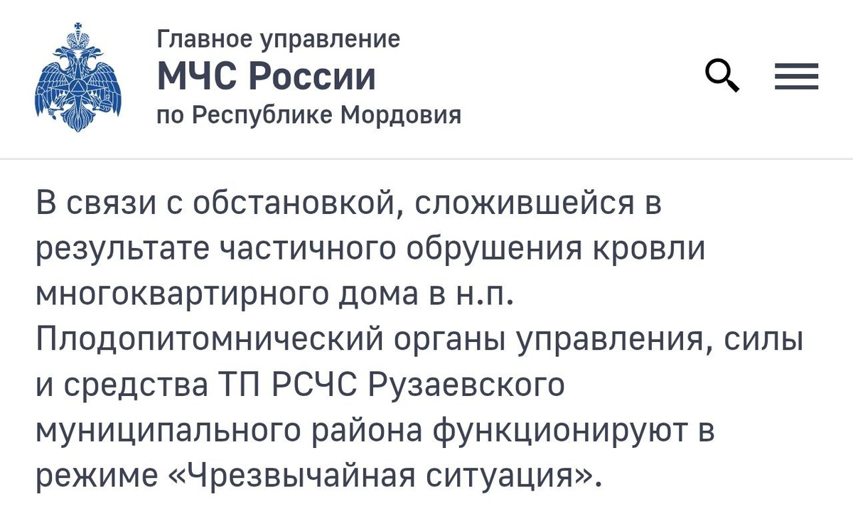 ☎️ Вслед за Инсаром в Мордовии из-за снега частично обрашилась ещё одна кровля