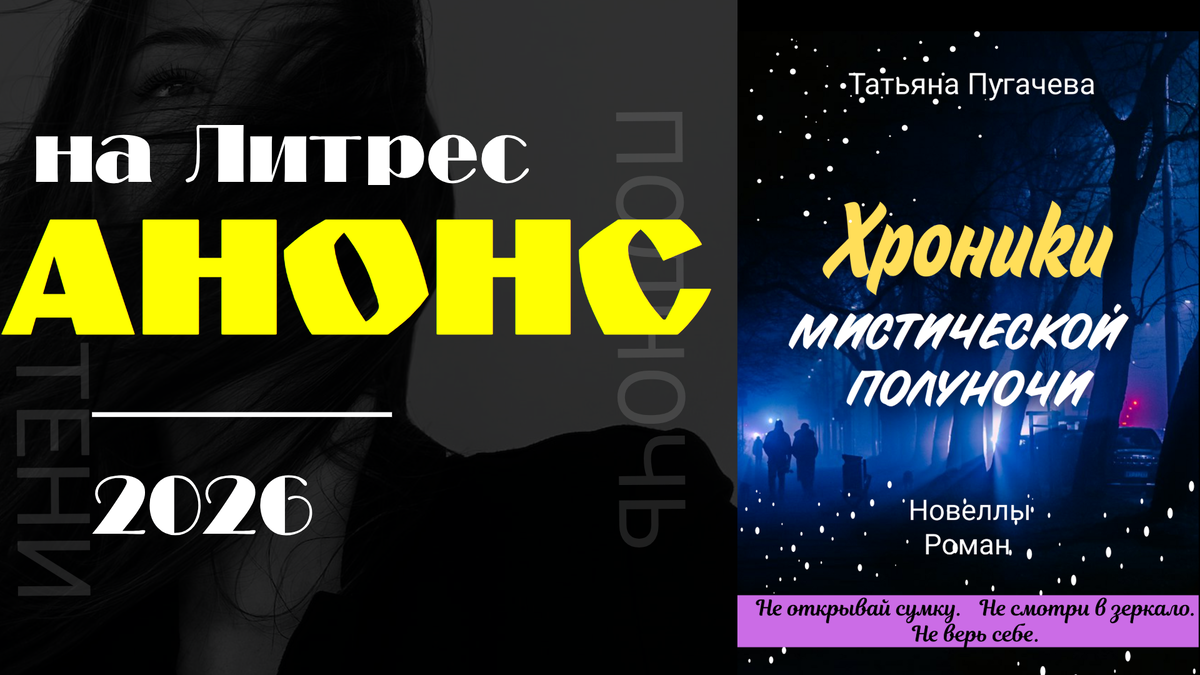 Премьера на Литрес! Вышла электронная книга «Хроники мистической полуночи». Это 8 историй для тех, кто любит умный хоррор и психологическую мистику. Никаких клише — только саспенс и вопросы, на которые страшно искать ответы. Вы когда-нибудь чувствовали, что с наступлением темноты мир меняется? Знакомые улицы становятся чужими, тени в углах комнаты оживают, а тишина начинает... звучать. 📚 Рада представить вам мою новую книгу — «Хроники мистической полуночи». Она уже доступна на Литрес! Это сборник из восьми историй о том, что скрывается на изнанке нашей реальности. Здесь вы не найдете банальных вампиров или оборотней. Здесь ужас носит личный, психологический характер. Представьте себе ситуации, от которых стынет кровь: 👀Вы смотрите в окно новой квартиры, но видите не улицу, а преступление, которое совершено ровно год назад. 📻 Вы едете по ночной трассе, и вдруг радиоприемник начинает озвучивать ваши самые страшные грехи. 🔔 Логика сыщика сталкивается с древним проклятием, и Смерть наз