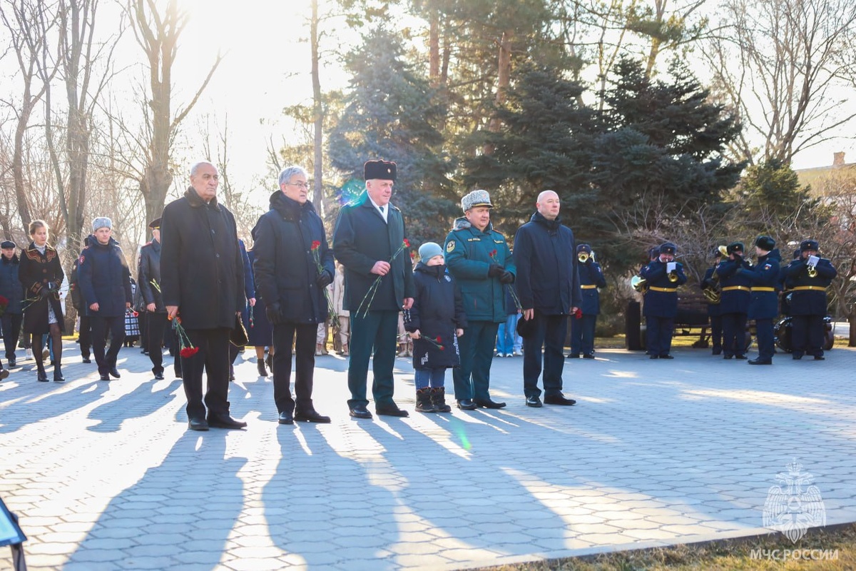 В День защитника Отечества в Астрахани прошли торжественные церемонии возложения цветов к мемориалам воинской славы. В мероприятии принял участие начальник Главного управления МЧС России по Астраханской области генерал-майор внутренней службы Юрий Землянский.