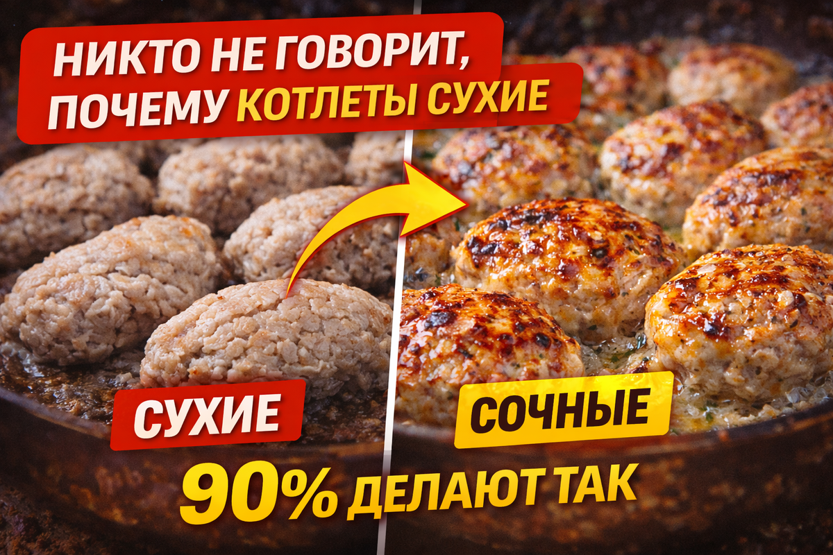 Если котлеты у вас сухие, плотные и «резиновые» — проблема не в мясе. Вы просто повторяете одну и ту же ошибку. И да, большинство хозяек делают её годами. Сейчас покажу, как приготовить сочные котлеты, которые остаются мягкими даже на следующий день. Сохраните — пригодится. Многие думают: чем больше хлеба, тем мягче. Нет. Избыток хлеба делает структуру рыхлой, а при жарке котлета теряет сок и становится плотной. Правильная пропорция: 800 г фарша
