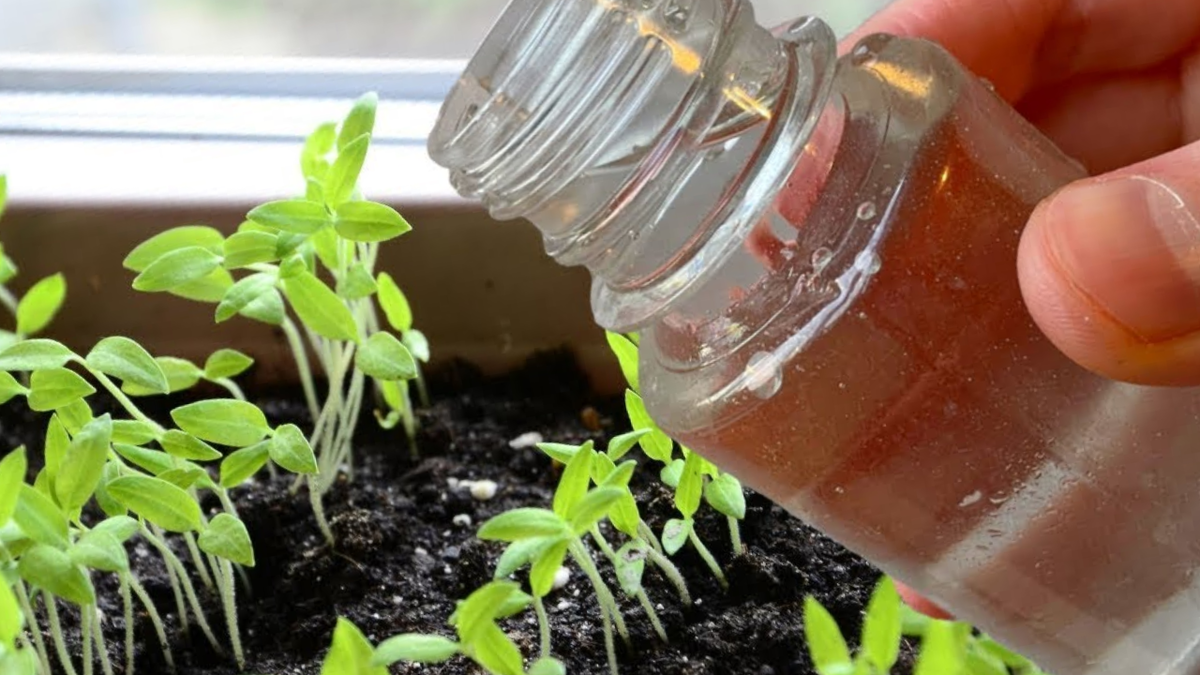 - Вариант первый – органика. Настой коровяка или куриного помёта. Развожу один к десяти. Поливаю под корень. По 50 миллилитров на растение. Органика даёт мягкое, длительное питание. Рассада после неё растёт равномерно, без рывков.