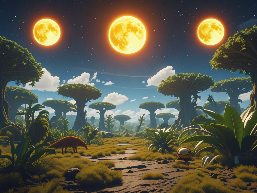 Представьте мир, где нет ночи. Никогда. Три звезды, танцующие в небе, освещают Землю 24 часа в сутки, 7 дней в неделю. Как бы изменилась наша жизнь, если бы привычный цикл дня и ночи исчез? Эволюция пошла бы совсем другим путем. Растения адаптировались бы к непрерывному фотосинтезу, возможно, став более яркими и выносливыми. Животные, лишенные периода отдыха, выработали бы уникальные механизмы восстановления энергии. Человечество, вероятно, обрело бы совершенно иную культуру и социальную структуру, где сон стал бы роскошью, а активность не прекращалась бы никогда.