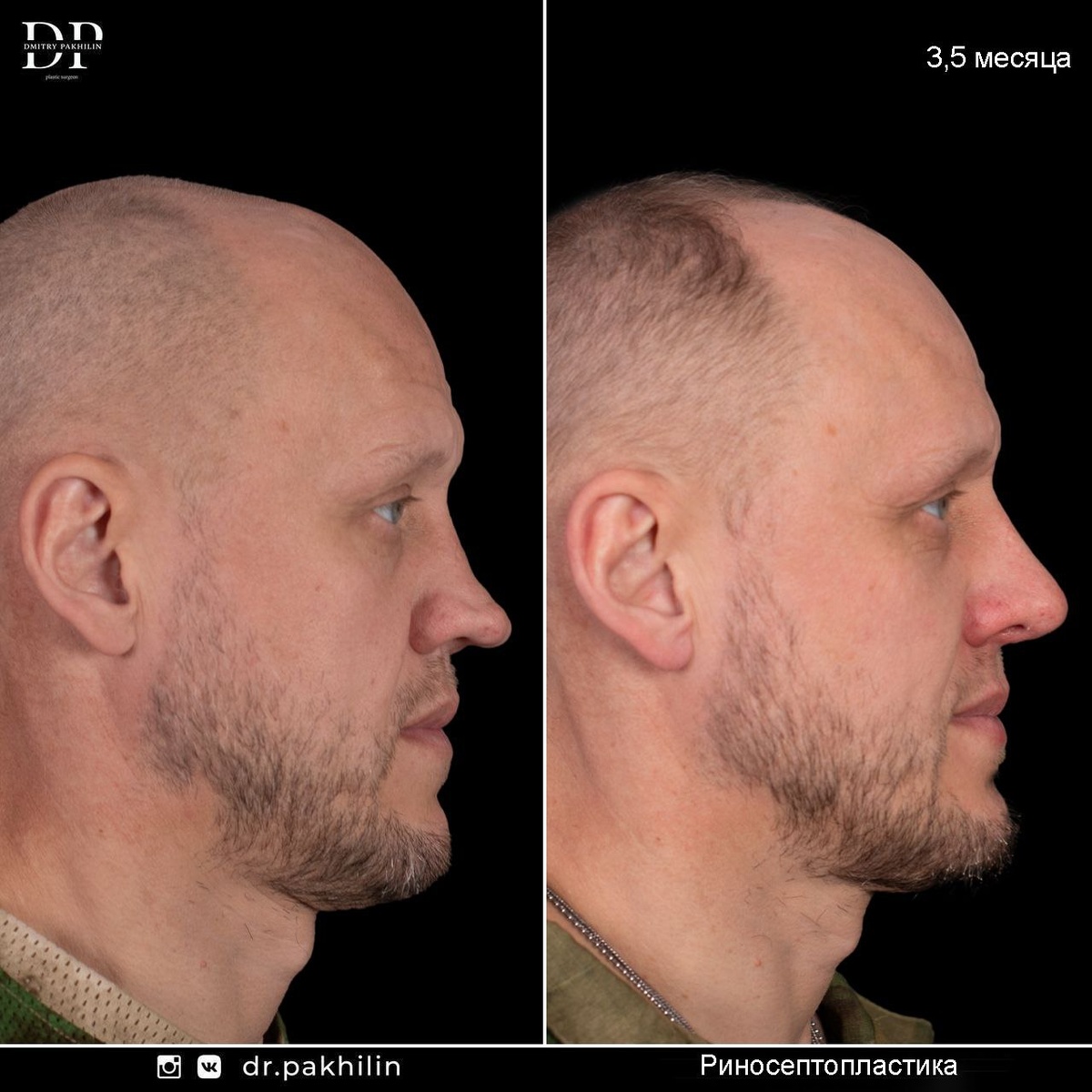 #ДМИТРИЙ_ПАХИЛИН Реконструкция носа ▫️Реконструкции носа считаются наиболее сложными операциями в ринохирургии, поскольку приходится решать большое количество задач как снаружи, так и внутри носа. Обращаются пациенты после множественных травм, приводящих как к эстетическим дефектам, так и функциональным нарушениям. 🚹 К нам обратился пациент, участник СВО, многодетный семьянин, сильный и добрый человек. К внешности не привередлив, но деформация носа искажала мужественные черты лица. Это и побудило обратиться на ринопластику 🔻При осмотре нами была выявлена: ▫️ Сложная деформация во всех отделах наружного носа, ▫️Дополнительно отсутствие перегородочного хряща в переднем отделе с потерей опоры. ▫️При риноскопии выявлено грубое искривление костного отдела влево с наличием синехий, блокирующих дыхание через левый носовой ход. ❗В анамнезе пациент перенес септопластику 2 года назад Продолжение в посте ниже 🔻