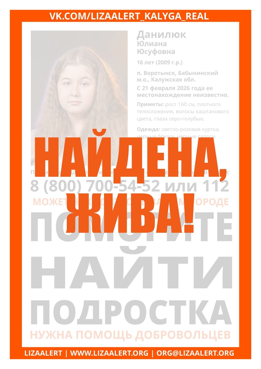 ⚡ Пропавшую 16-летнюю жительницу Воротынска нашли.