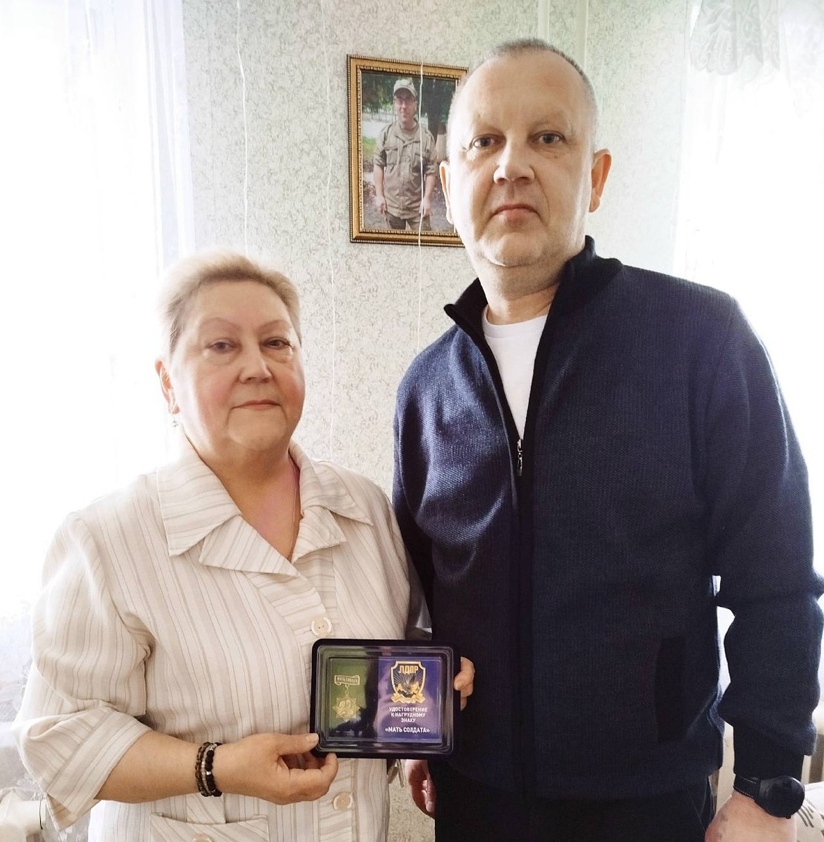 » Награда была учреждена ЛДПР для женщин, воспитавших защитников Отечества — участников специальной военной операции, Героев России и ветеранов боевых действий. Знак может вручаться матерям, бабушкам, опекунам и попечителям военнослужащих, проявивших мужество и героизм. Депутат ЛДПР Богородицка Михаил Куралесов в знак безграничного уважения и благодарности вручил Тихомировой Ларисе, маме участника специальной военной операции, нагрудный знак "Мать солдата", учреждённый Высшим советом ЛДПР. В Узловой отметили вклад матери участника СВО в общее дело Победы. Награду передал координатор местного отделения Станислав Фейгин Светлане Краснобаевой — маме военнослужащего, выполняющего свой долг на фронте. В ходе встречи Станислав Фейгин подчеркнул, что Светлана является ярким примером активной гражданской позиции. Несмотря на личные переживания за сына, она находит время и силы для системной волонтёрской работы. Светлана регулярно принимает деятельное участие в сборе гуманитарной помощи, фо