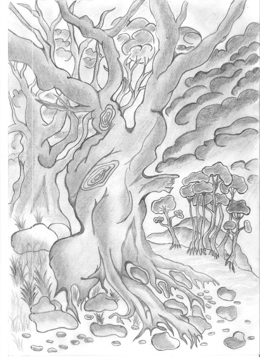 Описание: "На создание рисунка «Гроза» меня вдохновило стихотворение Николая Рубцова «Во время грозы». Рисунок выполнен в технике «Скетчинг» (простым карандашом). Особо